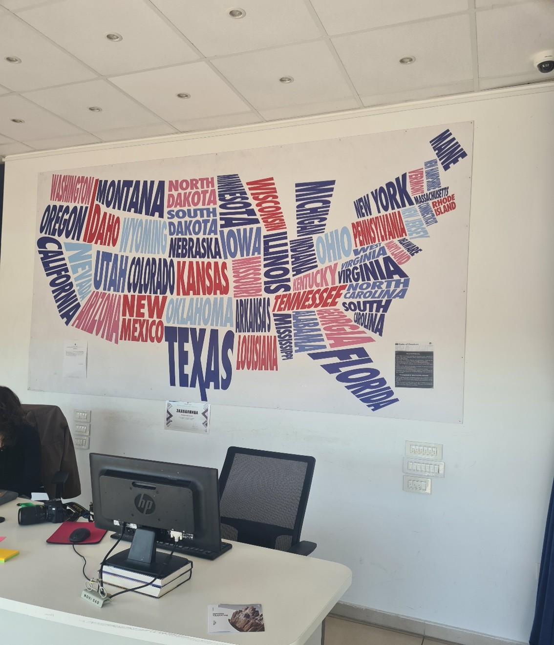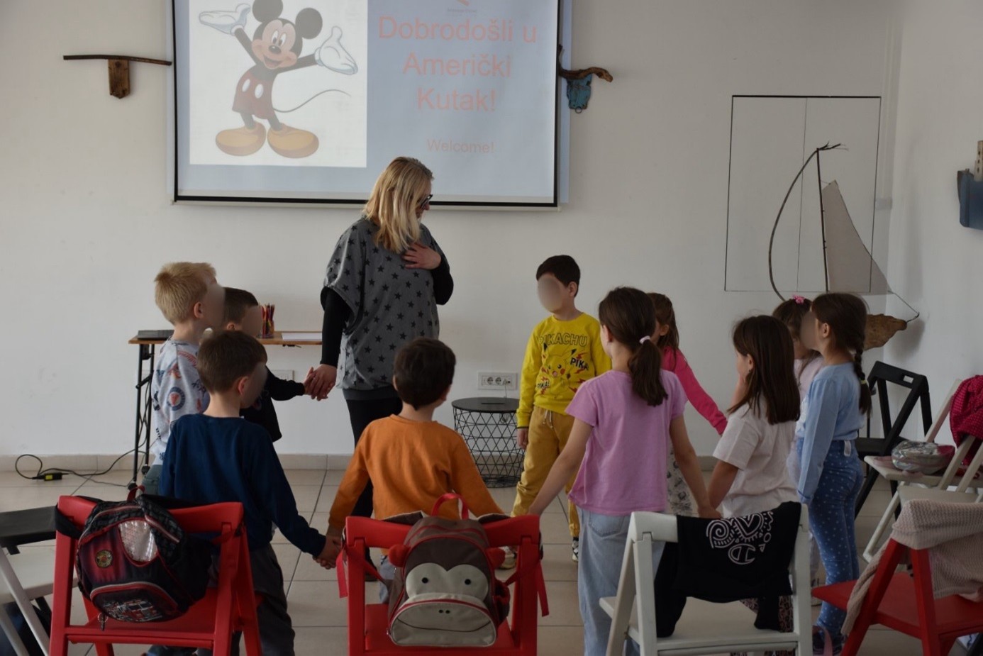 Група пред полазак у школу са васпитачима Тамаром Грмушом и Стеваном Јордановским, посетила је Амерички кутак у Новом Саду, заједно са Јеленом Блажевић, сарадником за стране језике. У циљу развијања свести и знања о различитим културама и језицима, деца су у Америчком кутку учествовала на радионици о културном и језичком наслеђу Сједињених Америчких Држава. Са координаторком Милицом Рашковић правили су пасоше и усвајали појмове на енглеском језику.