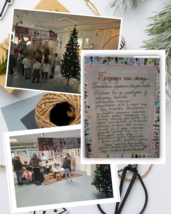 Наш централни хол је засијао новим сјајем. Поред лампица, јелке и празничног амбијента настала је нова просторна целина намењена свима који желе да са децом седну, буду маштовити и креативни и направе празничну честитку или украс. Свакодневно су се на овом месту током децембра стварале породичне успомене, а деци ће то квалитетно проведено време остати у лепом сећању.