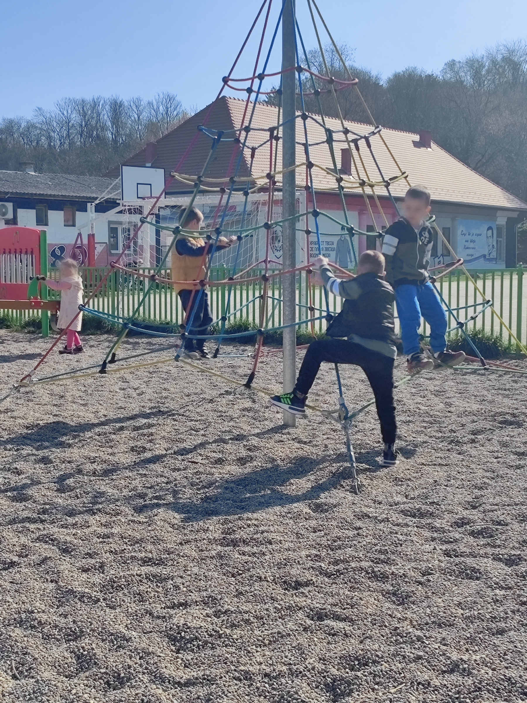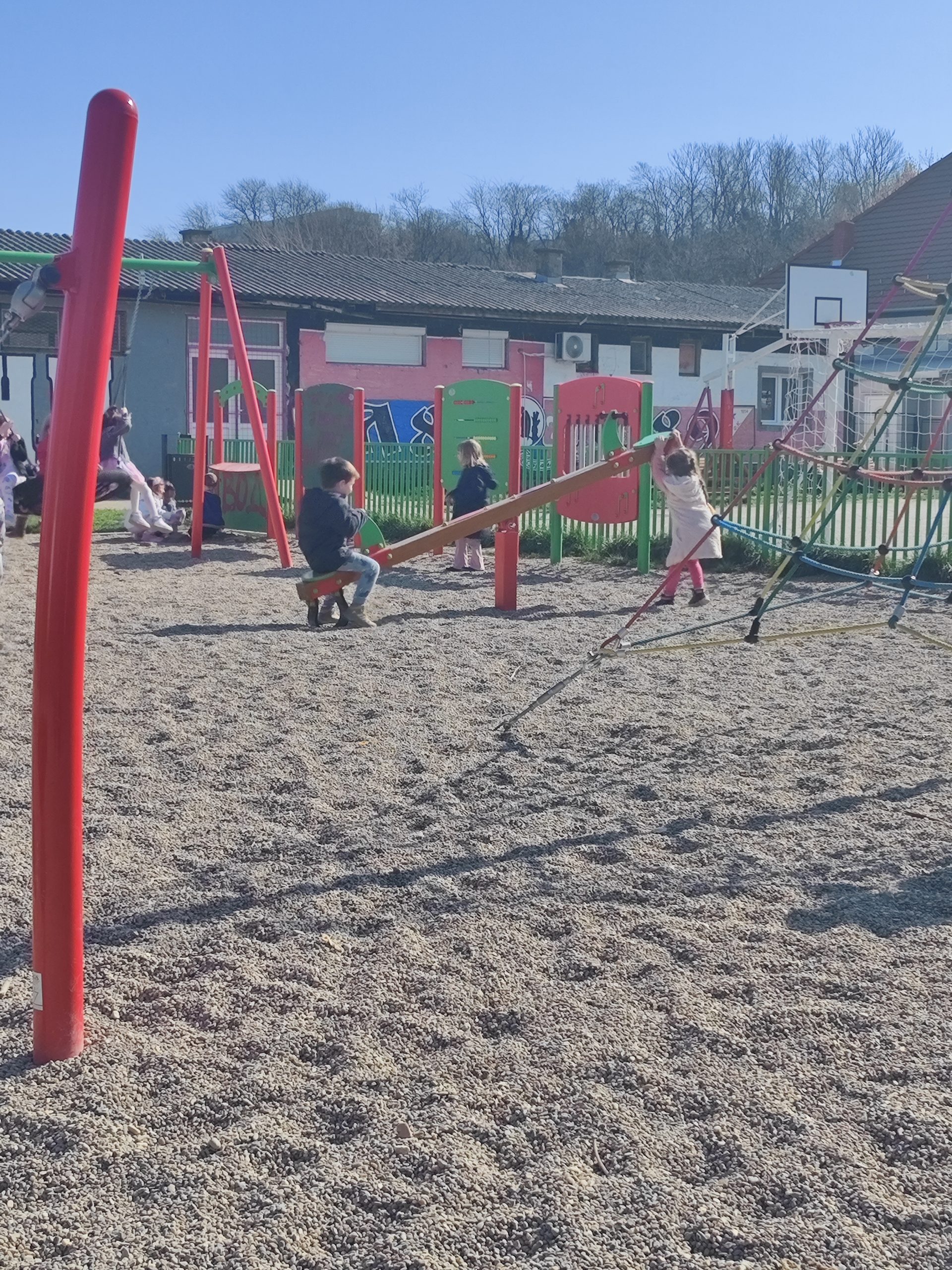 Средња васпитна група “Цветићи“ и старија васпитна група “Јежићи“ из вртића “Чика Јова“ проводе време у дружењу и заједничким играма на игралишту “Фрушкогорац“ у Сремској Каменици. Користећи љуљашке, тобогане, пењалице и клацкалице уз весеље, договор и разиграност, развијамо крупну моторику, окретност, координацију покрета.