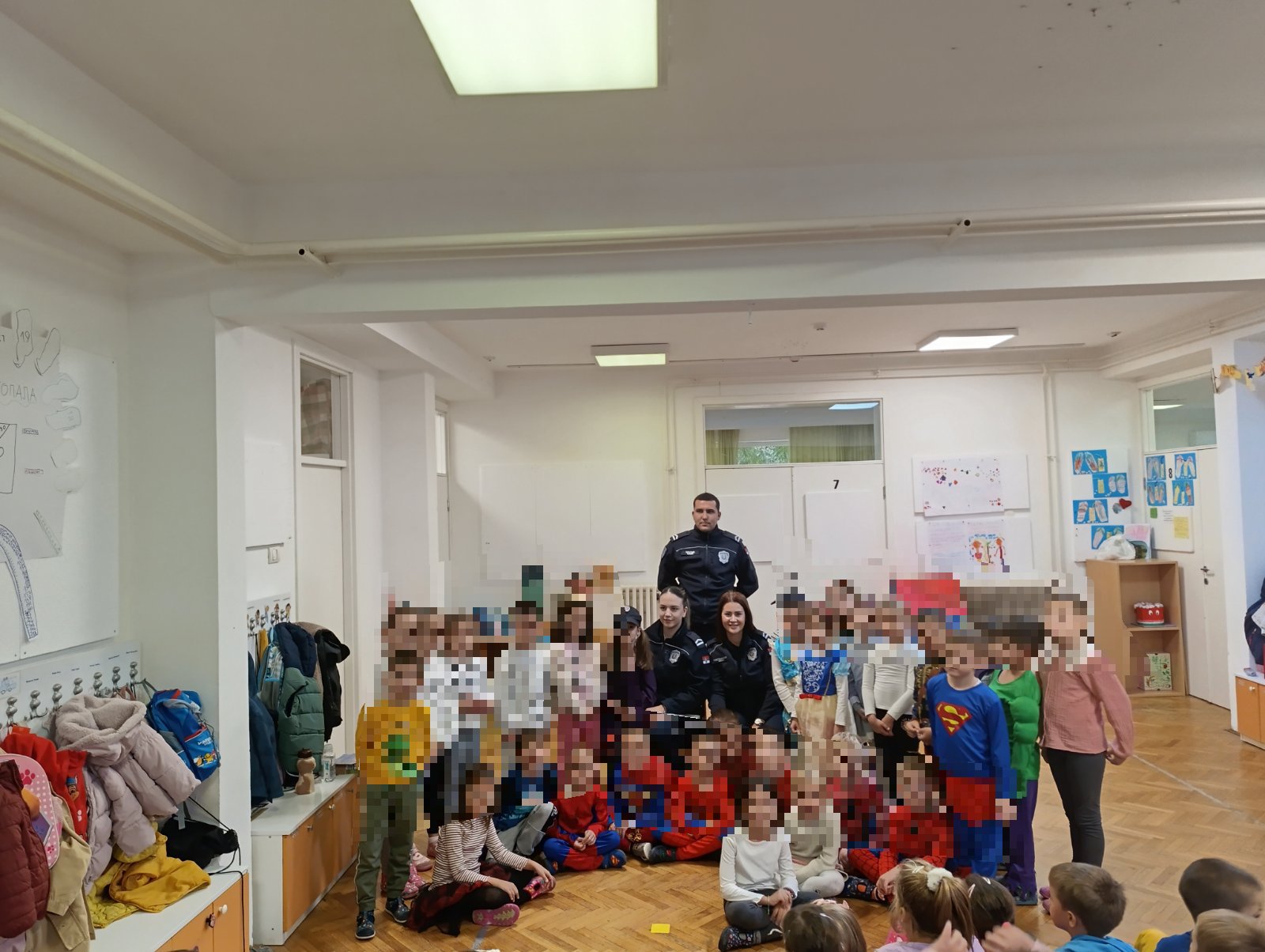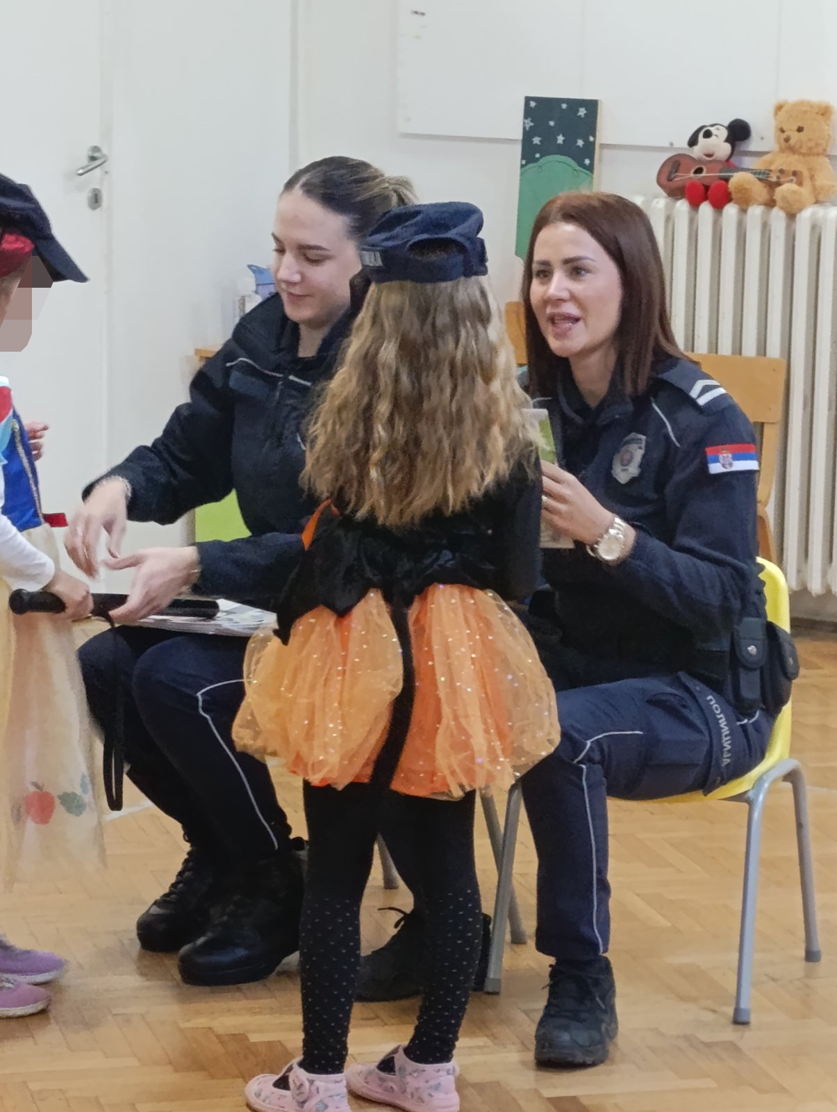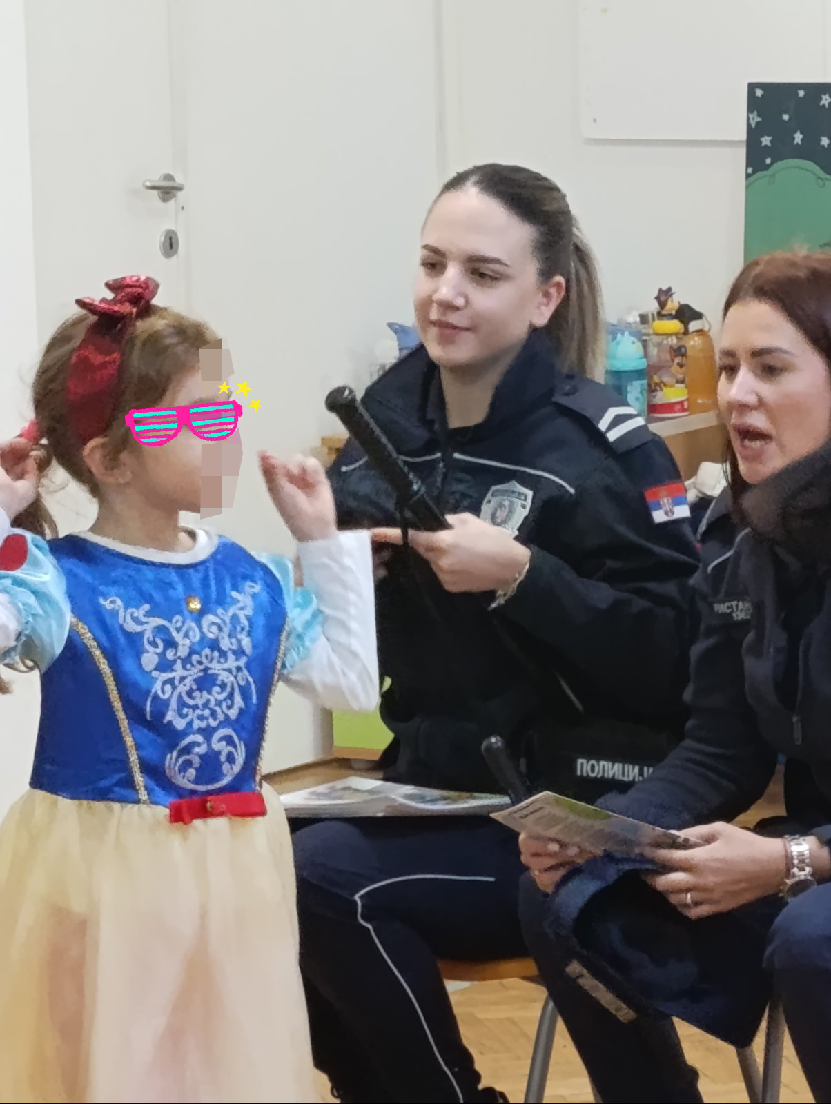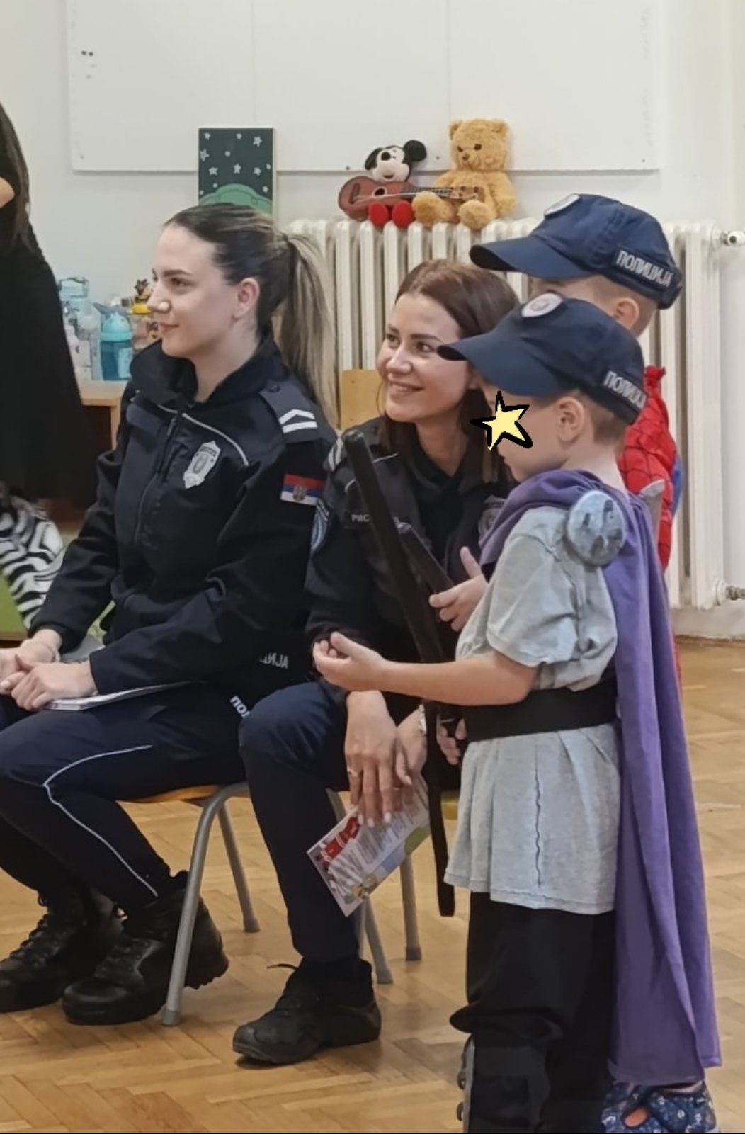 Деца група пред полазак у школу дружила су се са полицајцима, полицијске управе Нови Сад – Детелинара, у оквиру обележавања дечије недеље. Деца су упознала делове униформе и опреме за рад, добила су штампани материјал за бојење на тему „полицајац.“