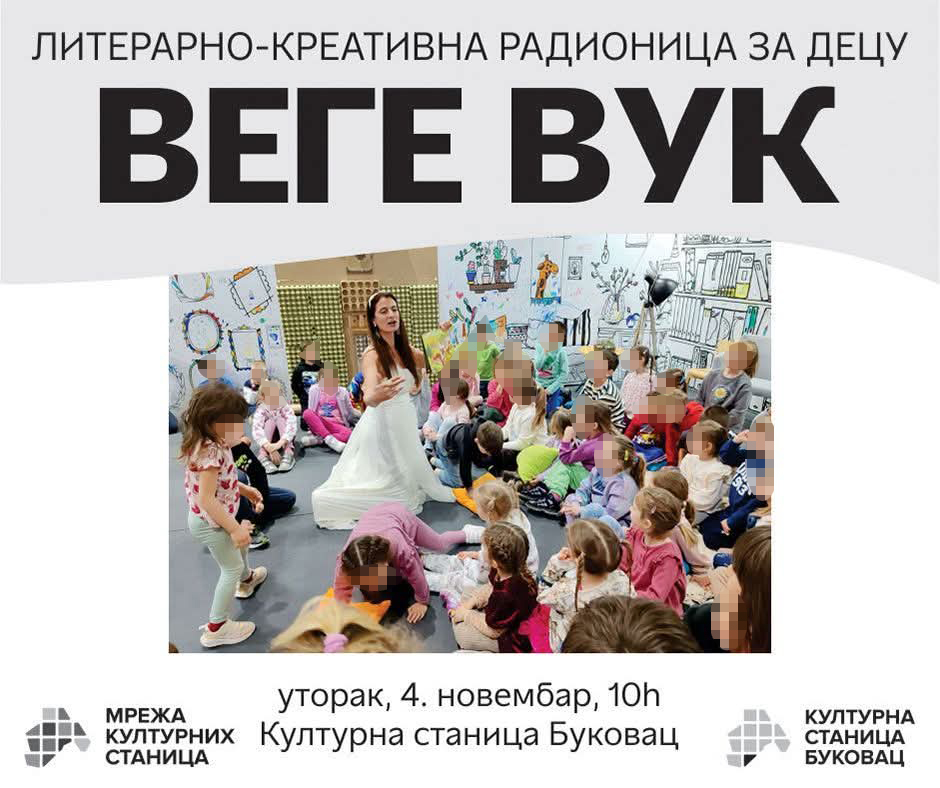 Позоришна представа у Културној станици у Буковцу је омогућила да деца пред полазак у школу и деца из две старије васпитне групе, нашег вртића „Зека“, присуствују и уживају у представи заједно са децом нижих разреда О.Ш. „22 август“. Поучна и забавна прича, ауторке Данијеле Ћирјаковић говори о Веге вуку који воли да се дружи, да пије воћне сокове и игра. Деца су понесена новим сазнањима, лепим емоцијама и позитивним утисцима.