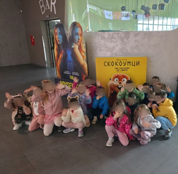 У циљу истраживања културних садржаја локалне заједнице, и уз свесрдну помоћ родитеља, деца мешовите групе, са васпитачима Сањом Радовић и Маријом Мркелом, ишла су у биоскоп BIG CineStar. Друштво су им правили и другари из групе пред полазак у школу вртића ,,Бамби“, са васпитачима Тамаром Грмушом и Стеваном Јордановским. Деца су гледала анимирани научно-фантастични хумористички филм ,,Скокоумци“. Заједнички проведено време било је корисно и забавно и за децу и за васпитаче.