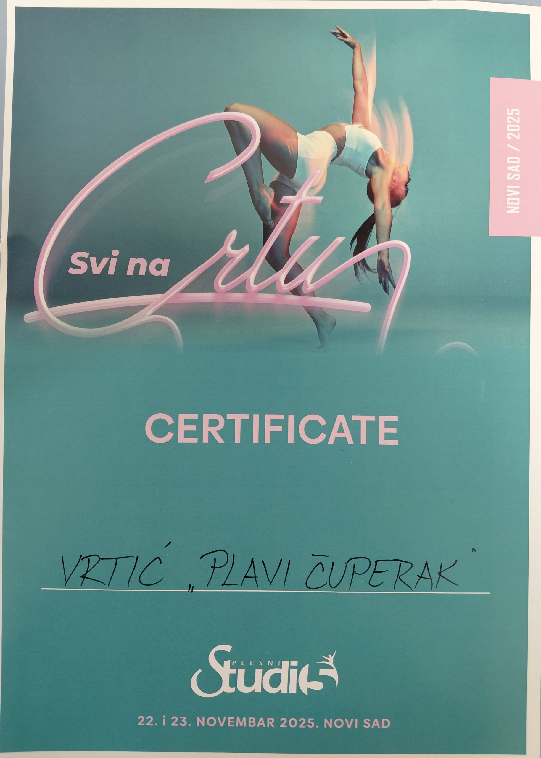 Деца групе пред полазак у школу „Бубамаре,“ са васпитачицама Драганом Кекић и Наташом Макаји Мудрох, наступила су на плесном фестивалу „Сви на црту,“ који је одржан 22. новембра. Деца су наступала са својом аутентичном кореографијом на песму „Зима бежи,“ коју су, уз подршку васпитачица, сами осмишљавали и увежбавали. Наступ је био изузетно успешан и испраћен громогласним аплаузом публике, а као награду добила су пехар, сертификате и пригодне поклоне. Учествовање на фестивалу била је прилика да деца доживе нову врсту јавног наступа, осете атмосферу сцене и поделе своје стваралаштво са другима.