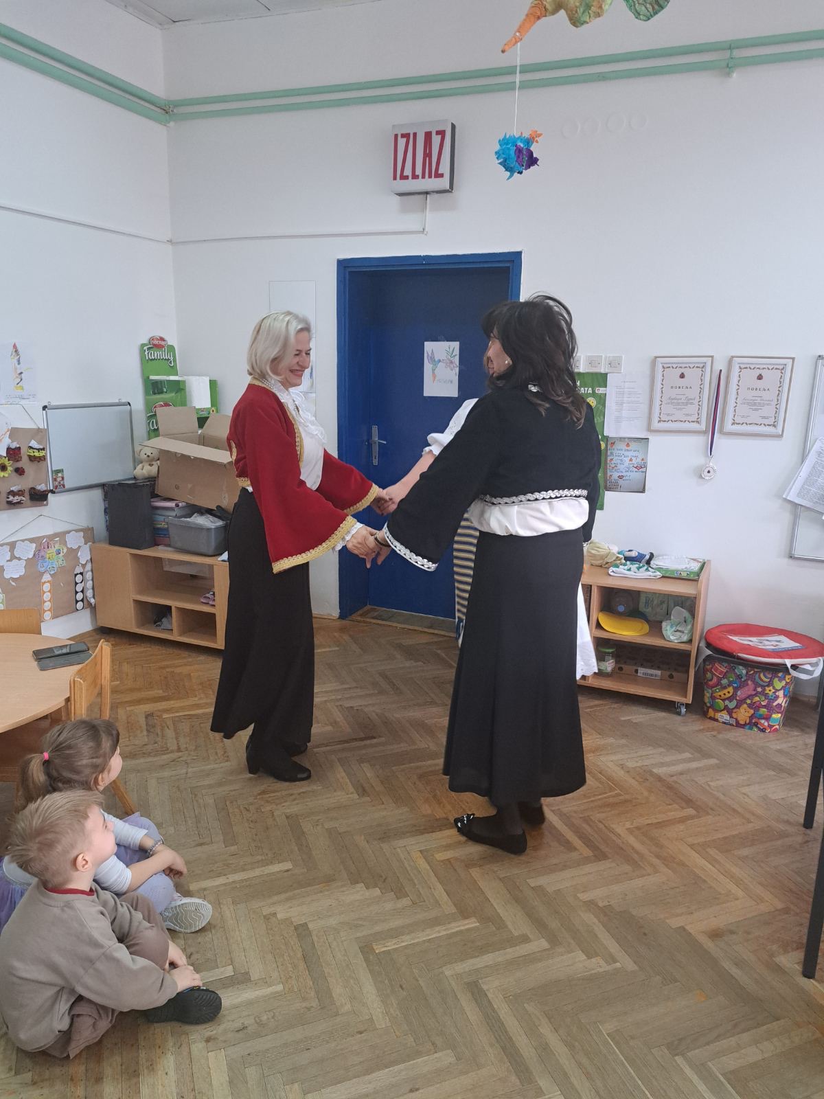 У оквиру пројекта “Моји бака и дека могу и знају …” млађој вртићкој групи “Колибри” придружили су се наши најстарији суграђани и показали деци и васпитачицама Александри Милетић и Љубици Вујић, вештине које су стекли кроз живот.