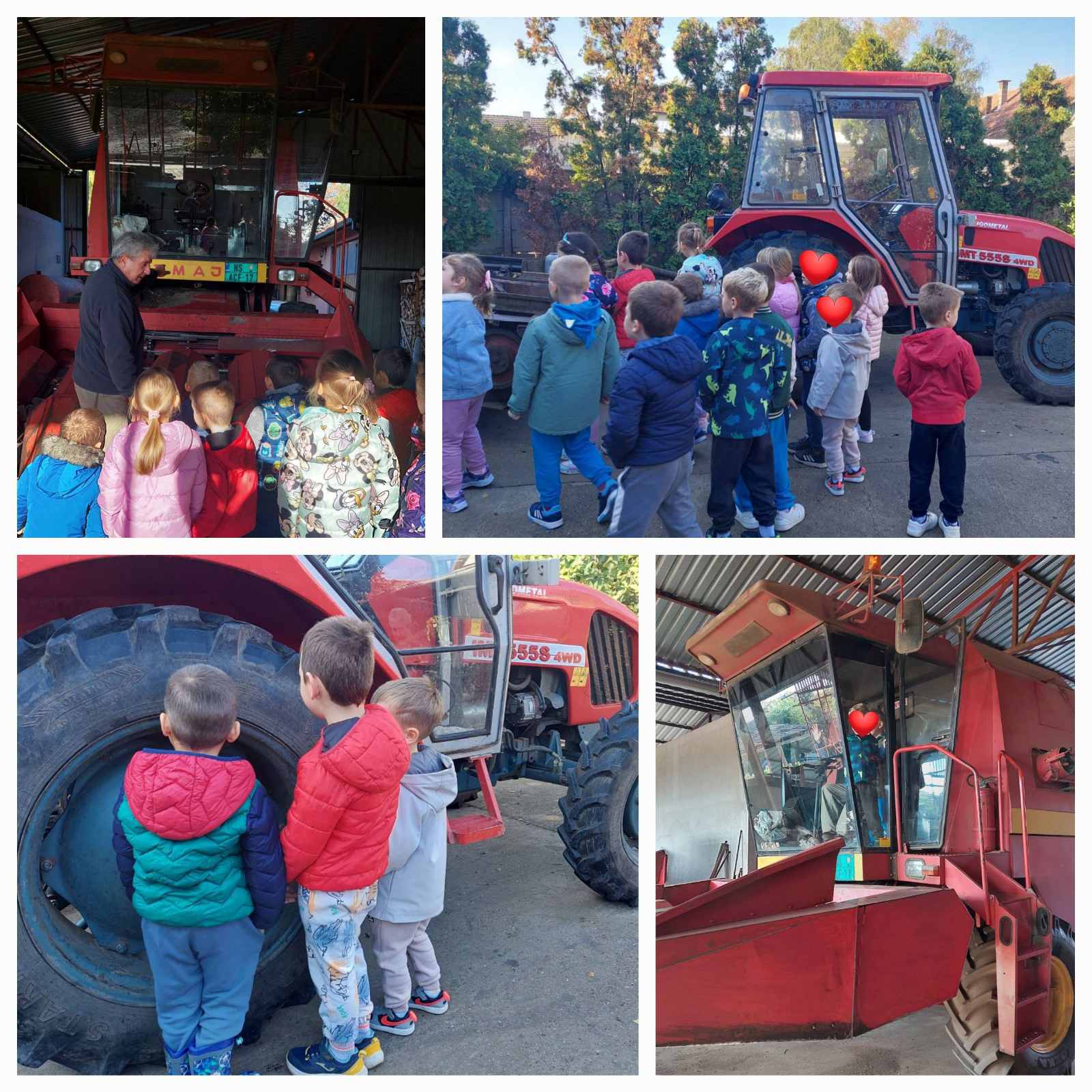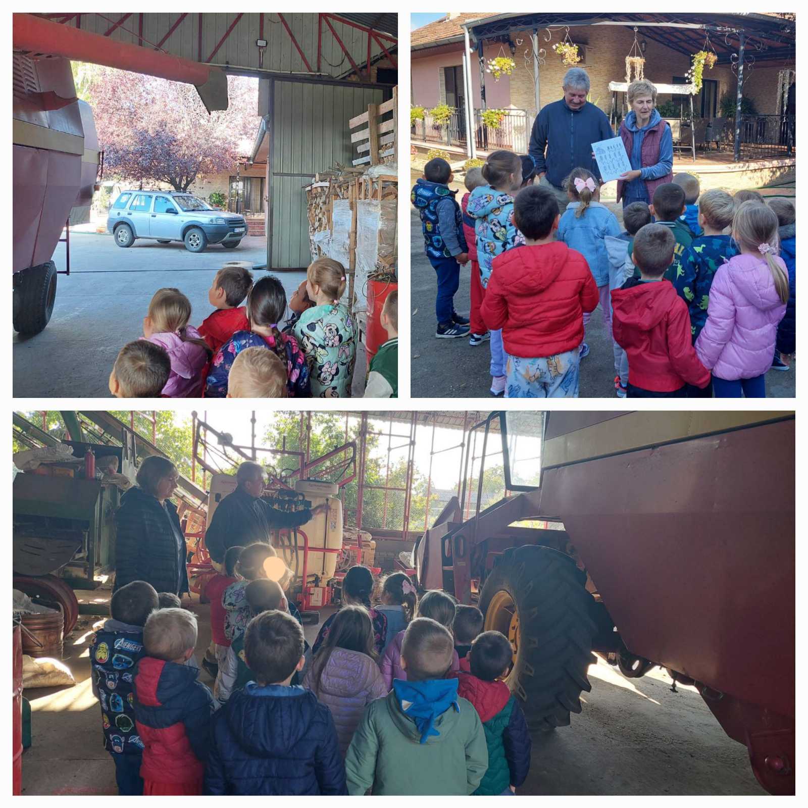Деца су разгледала пољопривредне машине које газдинство поседује : трактор, приколицу, комбајн…