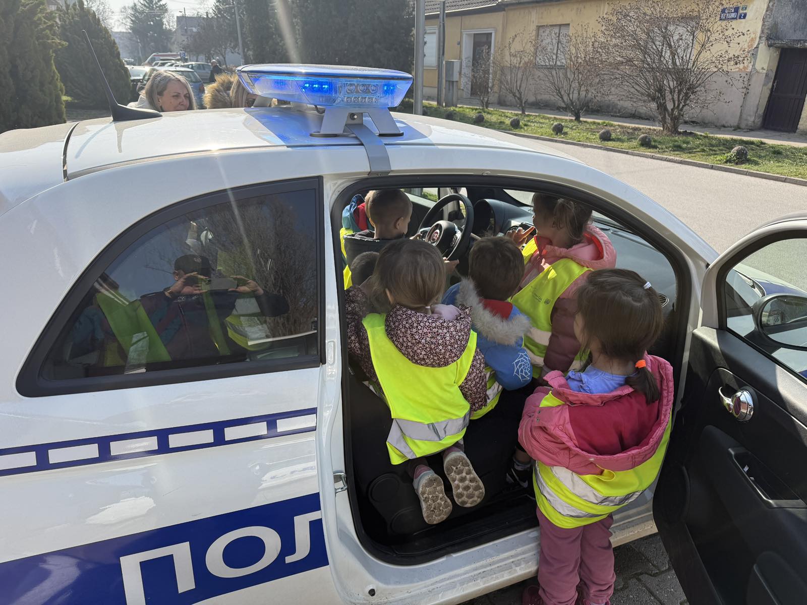Полицајац нам је објаснио основе саобраћаја и како се користи полицијско возило.