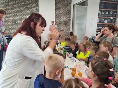 Група деце пред полазак у школу, са васпитачима Тамаром Грмушом и Стеваном Јордановским, имала су прилику да се увере колико хемија може бити забавна. Koристећи једноставне и безопасне састојке, деца су правила праве ,,ватромете под водом“. Кроз игру и експерименте, деца су усвајала нове појмове, проширивала своју радозналост и открила да хемија није никакав “баук“ – већ магија коју разумеју и стварају сами!
