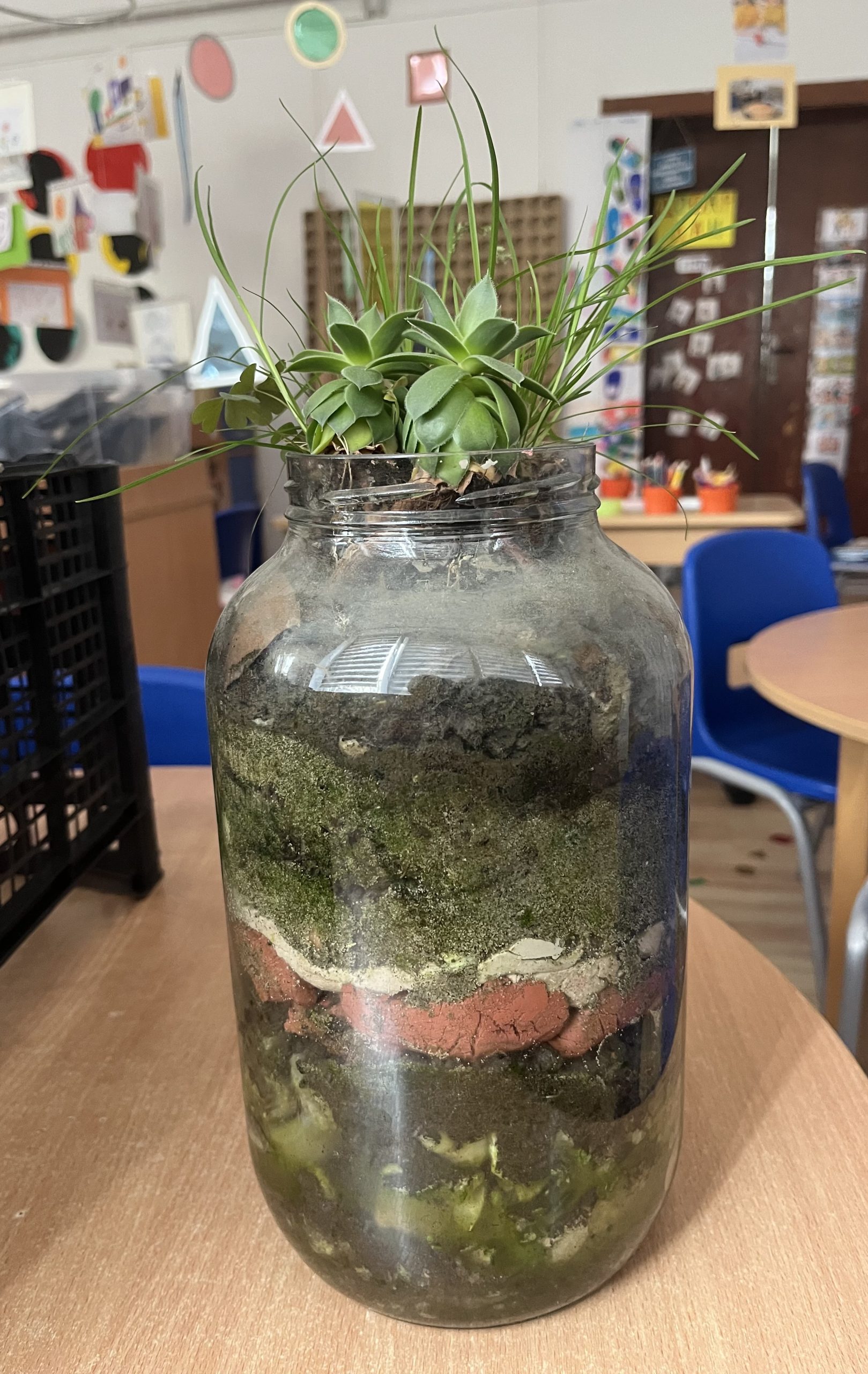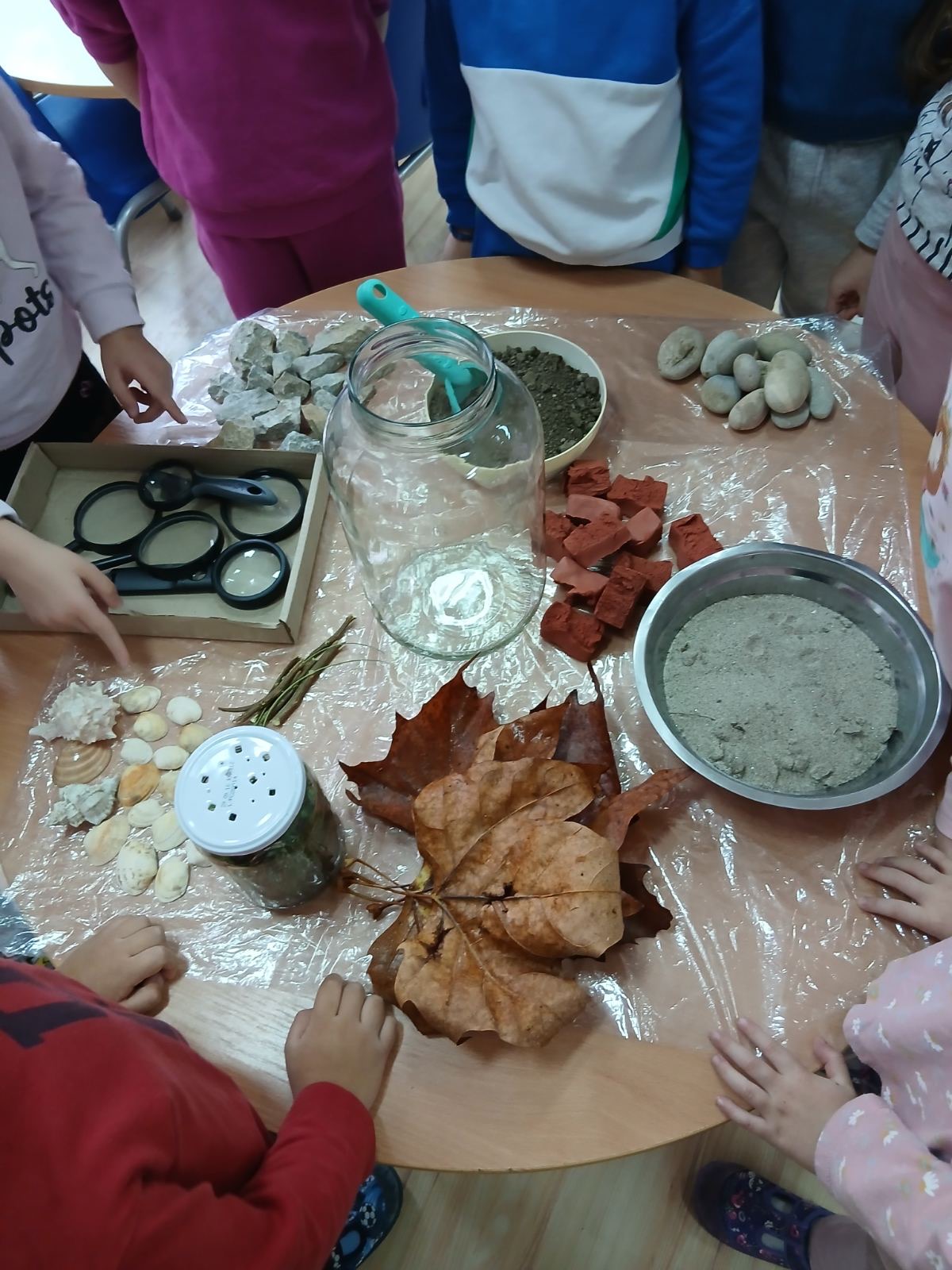 Деца средње група “Балончићи” из вртић “Колибри” васпитачица Наташа Клаић и Нина Крчмар у оквиру пројекта “Шта се крије испод земље?” , у радну собу унели су крупно камење, суво лишће, кућице од пужа, шкољке, глину, гранчице, песак и земљу. Врхунац овог чулног искуства било је прављење сензорне тегле. Користећи велику, провидну теглу, деца су ређала различите елементе, слој по слој. На врх тегле су пресадили чуваркућу, чији раст и даље прате и брину о њој.