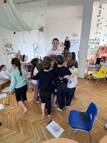 Кроз пројекат „Шта све руке могу?“, пролазили смо кроз разне изазове, те смо позвали особу која се такође сусрела са изазовима кроз живот- Дејану, „Девојку са крилима.“ Дејана је била отворена за сва наша питања и разговор, а на крају смо се и ми опробали у ликовним активностима-ногама.