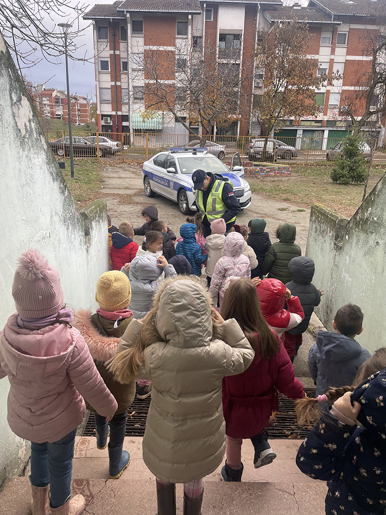 Упознавање са занимањем саобраћајног полицајца. Група деце Зечићи из вртића „Венди“ имала је прилику да се упозна са занимањем саобраћајног полицајца. Отац наше девојчице из групе нам је показао како и на који начин врши своју дужност.
