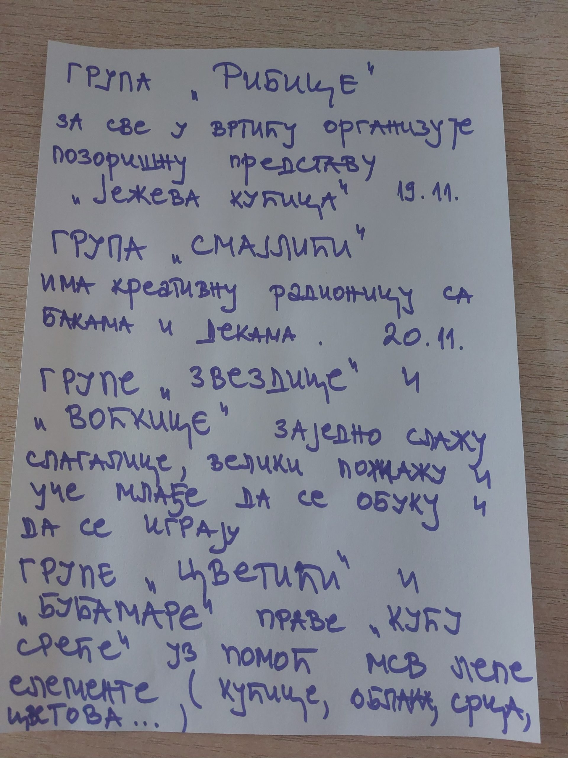 Заштита деце од ДЗЗН. За ову годину планирамо да кроз следеће активности током читаве недеље 18.11.2025. – 21.11.2025. пружимо подршку деци и породици, негујемо топле и сарађујуће односе и учимо да се чувамо, штитимо и да смо сви једнако важни.