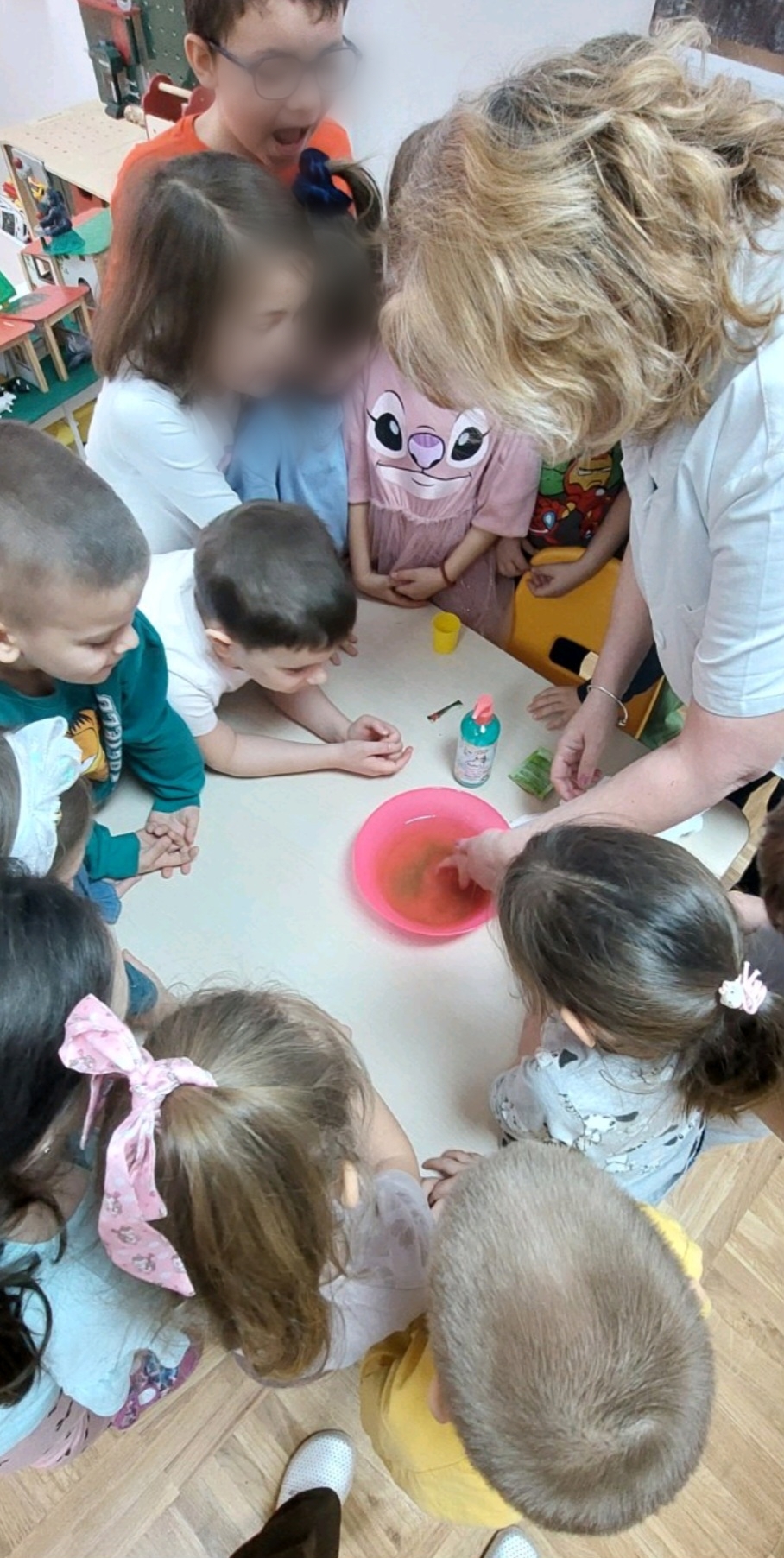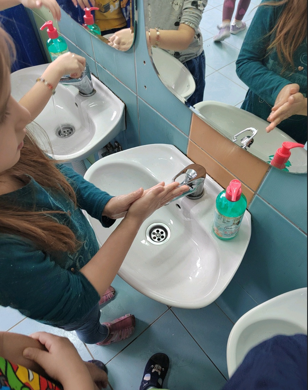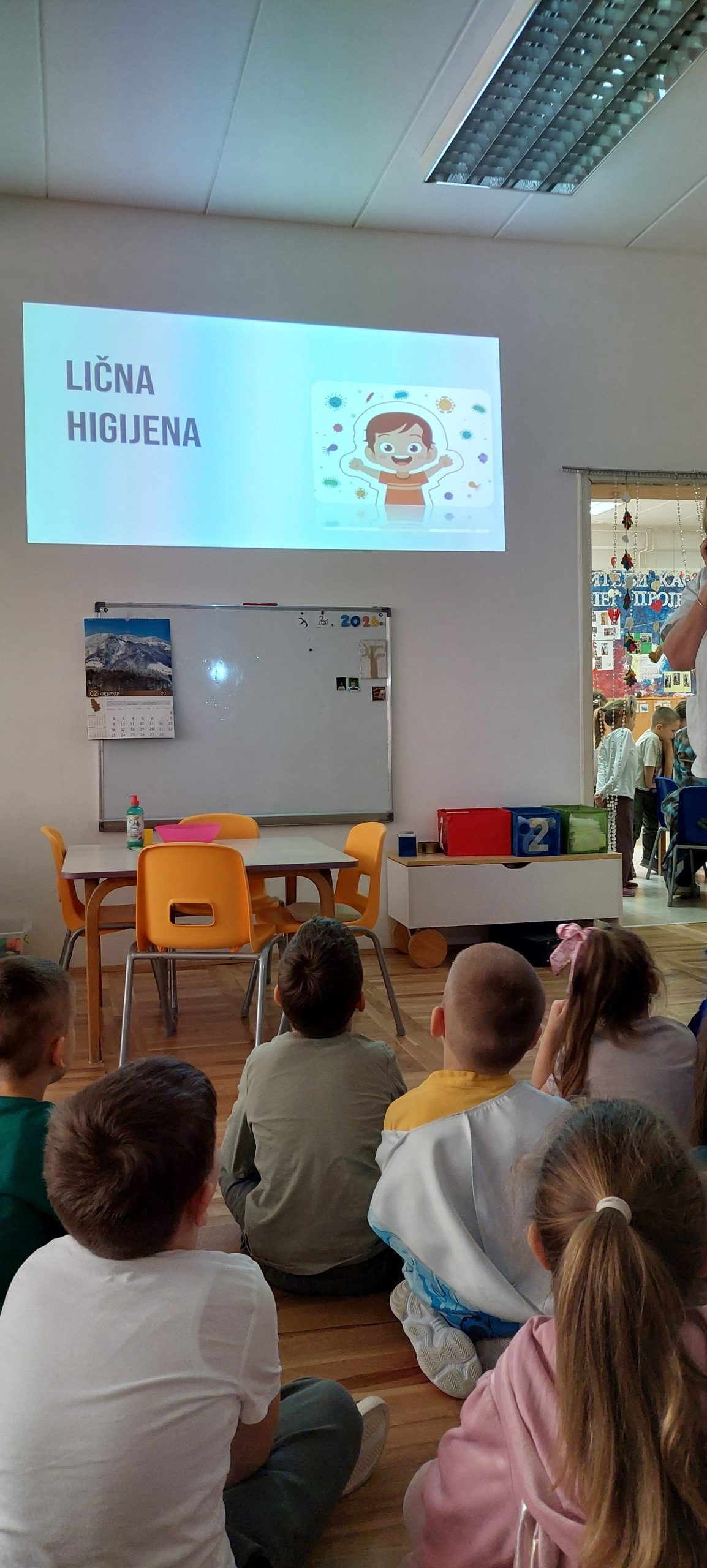 Патронажна сестра Вида Јанко нас је подсетила када и како правилно перемо руке, а кроз експеримент смо сликовито приказали на који начин сапун делује на бактерије и вирусе ( микроорганизме).